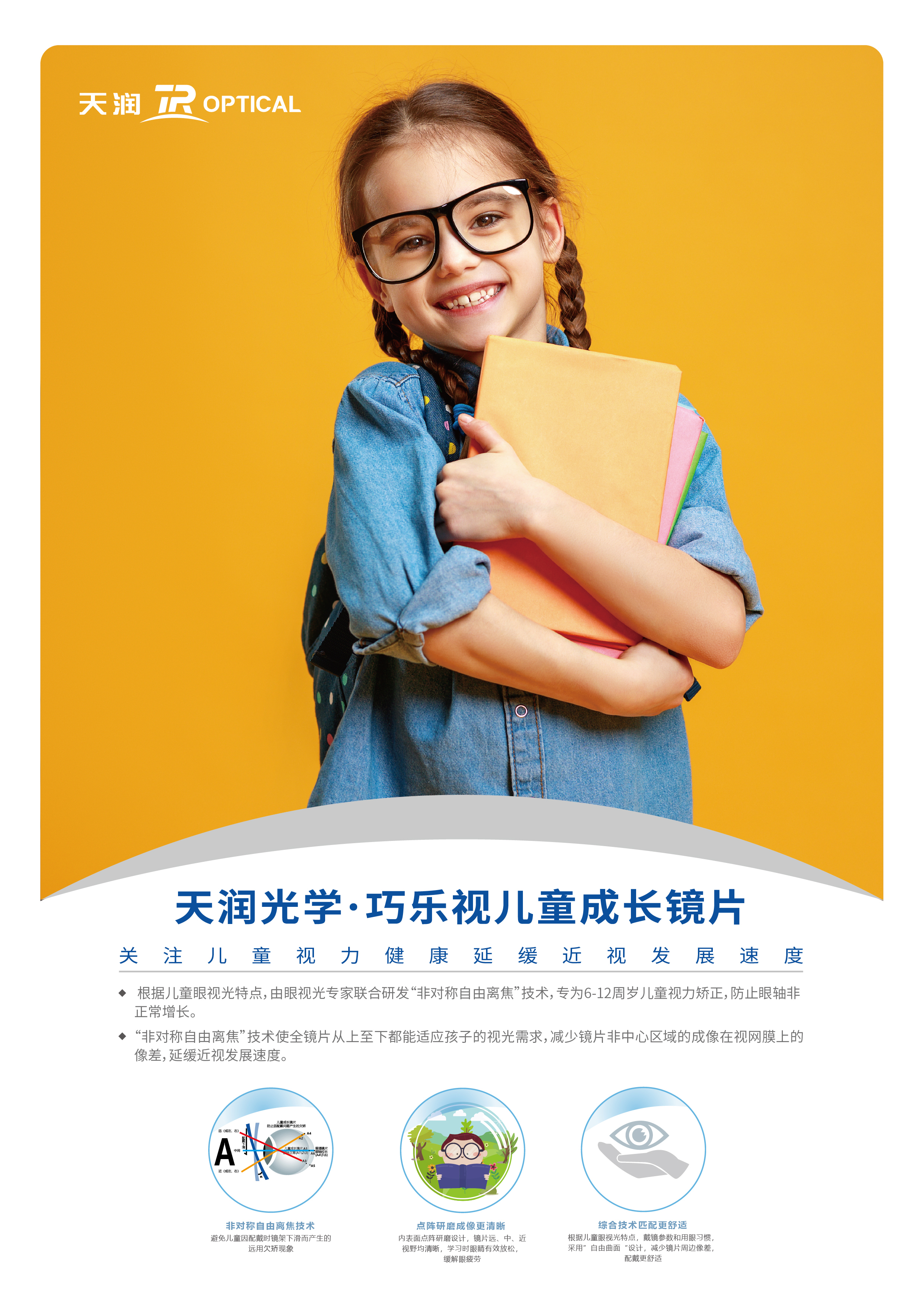 天潤兒童成長專用鏡是一款專為眼睛處于發育階段的兒童人群量身定制開發的產品。