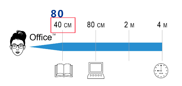 OFFICETM鏡片可以讓佩戴者使用一種更加舒適的姿勢(shì)。這得益于這種鏡片設(shè)計(jì)寬闊的中用與近用視野范圍,看近時(shí),你也不必將頭不停地調(diào)整了。