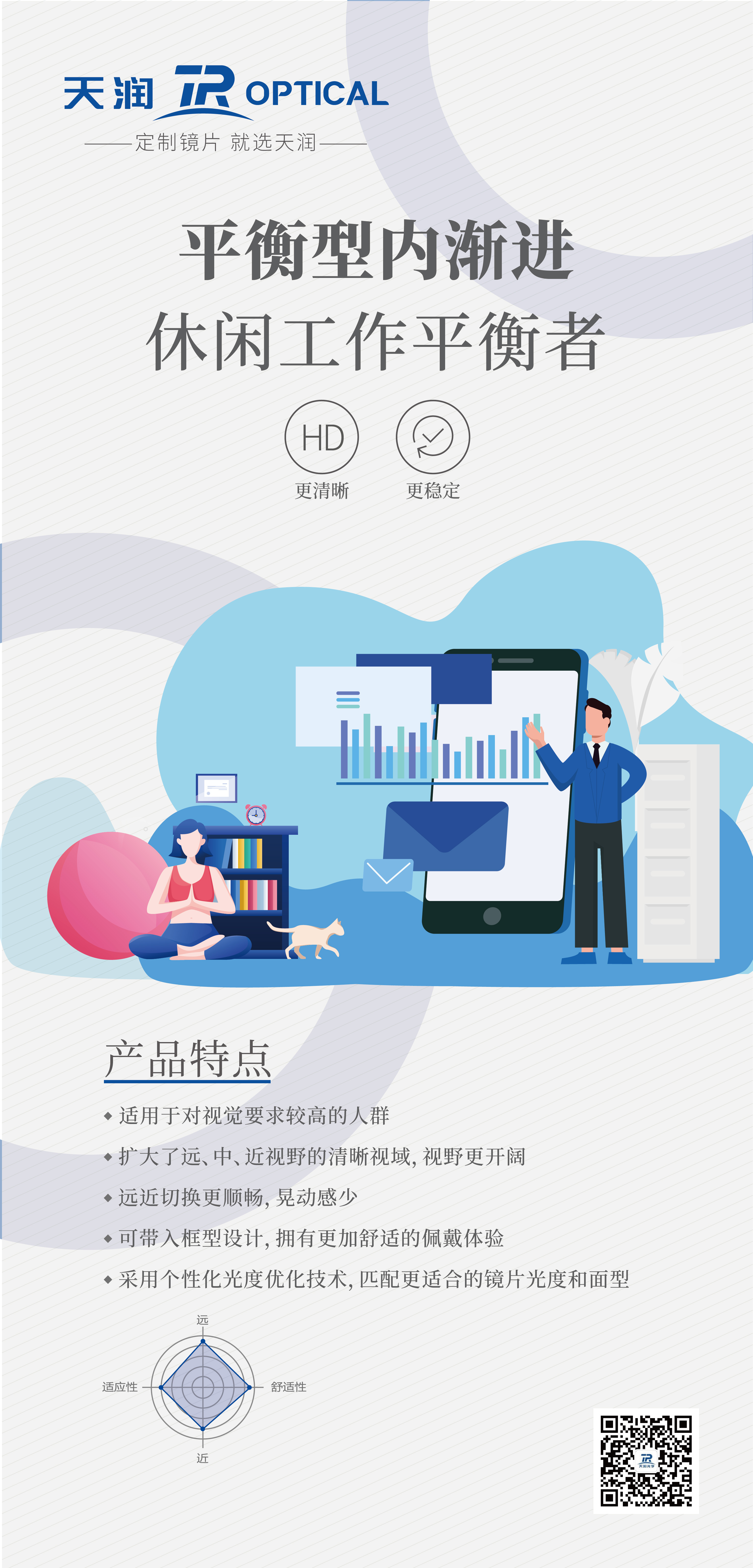 警惕“未老眼先衰”,天潤光學作為個性化定制鏡片視覺健康服務商深諳此道。天潤光學內漸進系列健全,擁有多功能、全系列可供不同人群選擇應用于不同場景的定制化內漸進鏡片產品。
