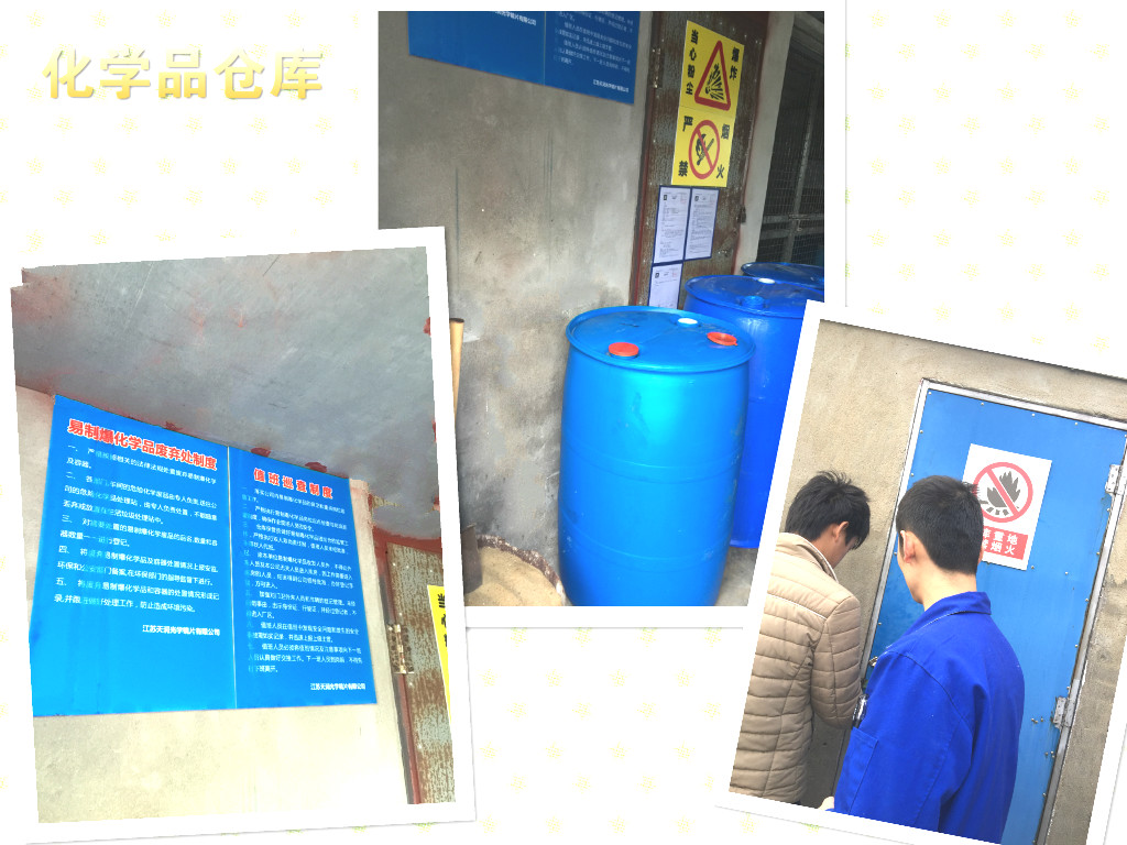 首先檢查的是化學(xué)品倉(cāng)庫(kù),化工倉(cāng)庫(kù)是存放化學(xué)品等易燃、易爆、劇毒、易揮發(fā)性材料的倉(cāng)庫(kù),實(shí)行雙門雙鎖雙人管理制度,此次檢查針對(duì)倉(cāng)庫(kù)化學(xué)品安全問題進(jìn)行一一排查,對(duì)不足之處提出加以整改并針對(duì)管理人員實(shí)施考核,記入績(jī)效。