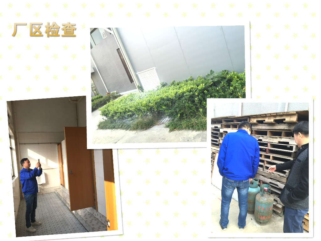 然后是廠區(qū)檢查,生產(chǎn)副總一行人主要針對(duì)廠區(qū)綠化、生活垃圾堆放處、廠區(qū)人行道、公路等處進(jìn)行檢查,對(duì)存在安全衛(wèi)生問題方面的地方做出指正,并拍照記錄。