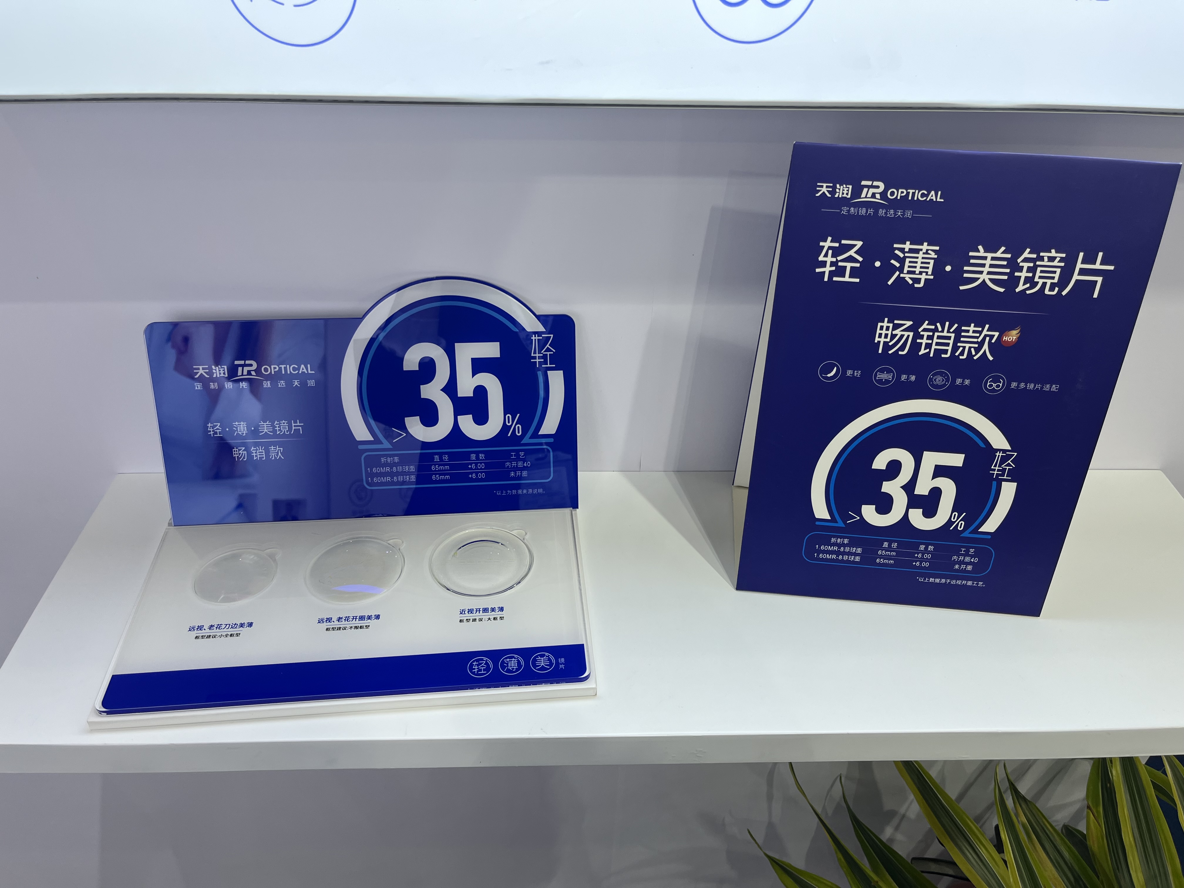 輕薄美鏡片作為高度數(shù)人群的利器,顧名思義:變薄變美的鏡片通過特殊加工工藝在不太影響視野范圍以及正常佩戴的前提下達到鏡片減薄的效果。針對正鏡和負鏡進行不同工藝的美薄設計開圈美薄、刀邊美薄異形美薄等不同工藝根據(jù)顧客的瞳距和鏡架參數(shù)進行電腦運算以使美薄的效果和視野的大小達到一種平衡。該類工藝一經(jīng)推出,獲得客戶強烈反響,上海展通過美薄道具的呈現(xiàn),充分體現(xiàn)了該工藝的優(yōu)勢,也吸引不少客戶駐足觀看。