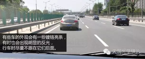 如今很多車輛車身上會有很多鍍鉻亮條,雖然看上去感覺不錯,但是陽光下這些裝飾條很有可能發生反光,影響視線。若前車反光明顯,我們最好不要跟在它們后面。