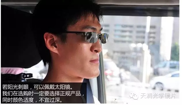 在陽光刺眼的早晨或傍晚,長時間迎著陽光開車,眼睛會產生不適,長此以往容易出現各種眼部疾病,因此陽光刺眼時應當佩戴太陽鏡來保護我們的眼睛。對于那些職業司機來說(如出租車司機、公交司機、班車司機等),車內應該常備太陽鏡。