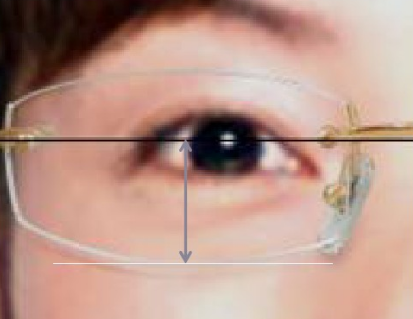 測量出標記點到鏡框最低內槽的垂直距離,即為被檢測者的瞳高。