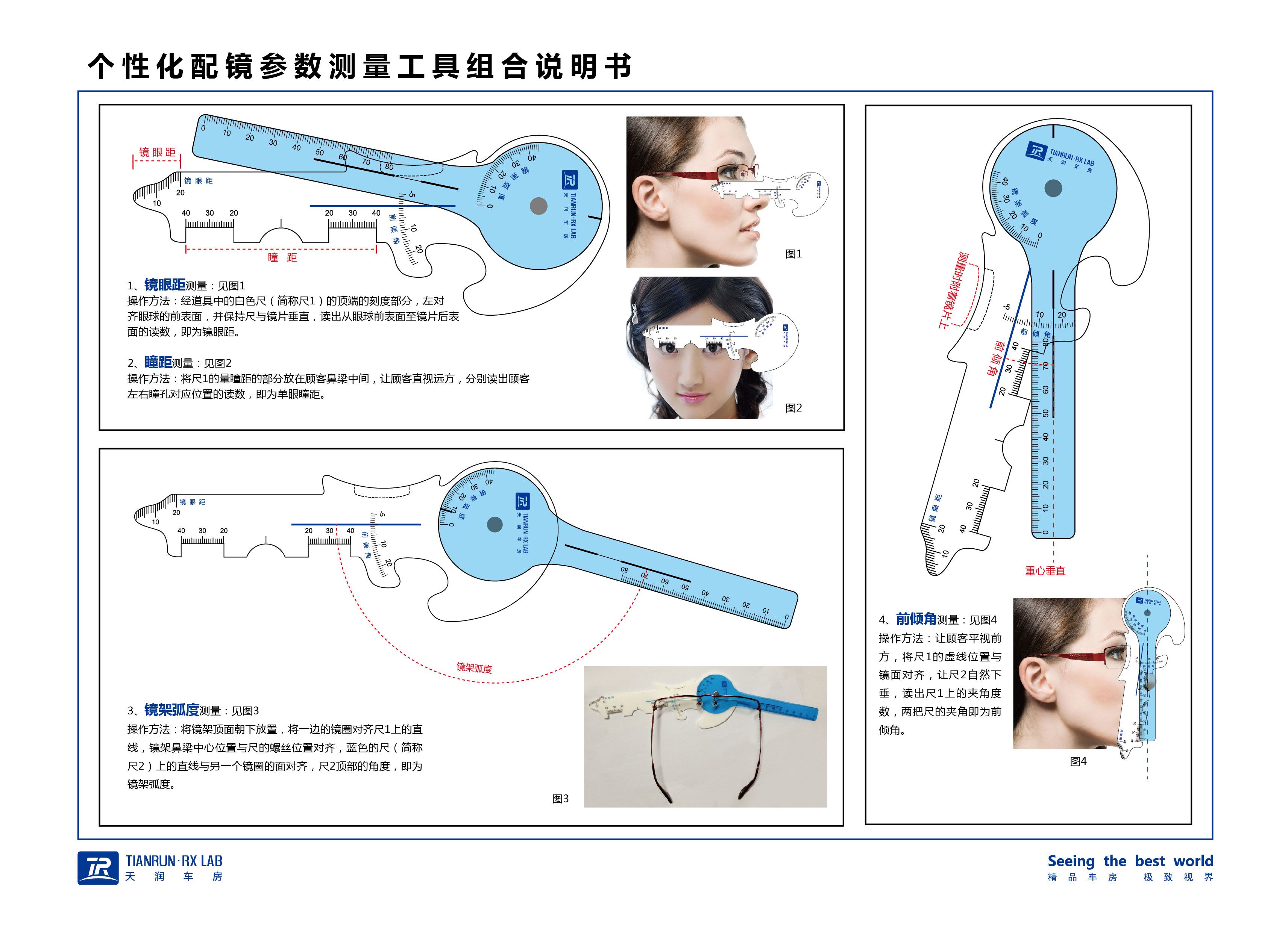 天潤光學個性化測量尺可以測量鏡眼距、瞳距、鏡架弧度和前傾角