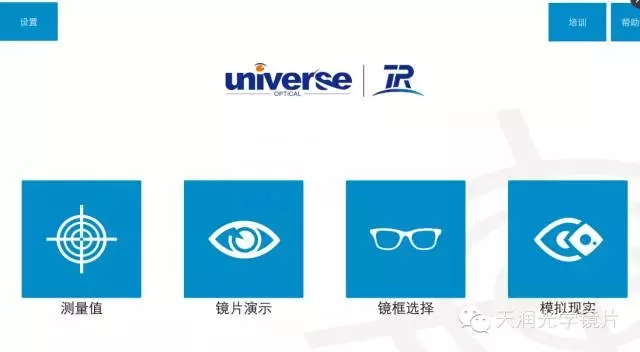 該套測量儀是天潤公司引進的具有全世界先進水平的可手持操作的儀器,也是結合國內實際情況單獨設定的軟件和硬件匹配使用的模塊,包含一個個人化配鏡參數信息采集器、一個模塊化信息處理終端和一臺平板電腦(IPAD AIR)。
