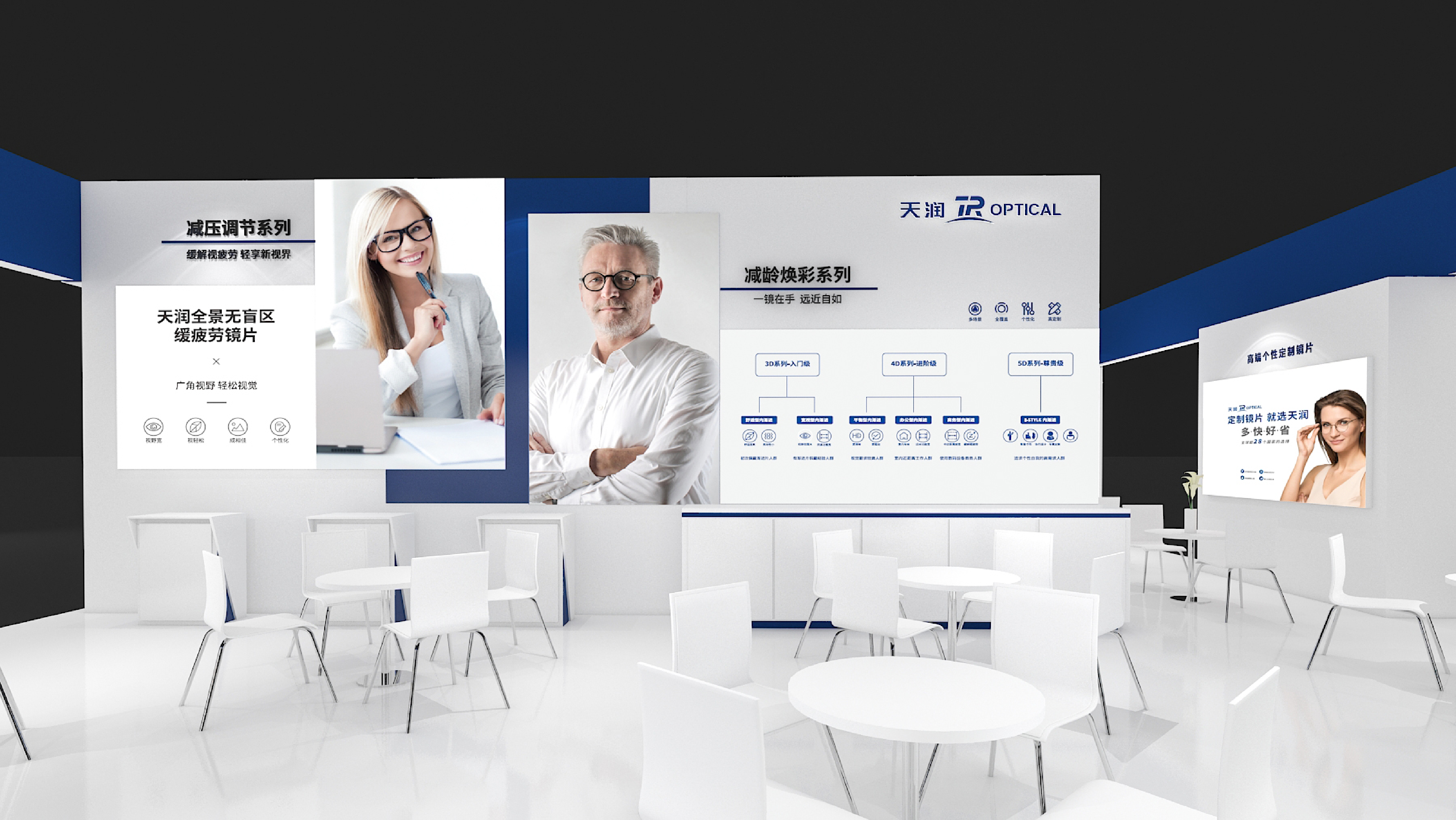 天潤光學(xué)展區(qū)按照產(chǎn)品系列設(shè)定共分布了5大展示區(qū)域,分別是近視管理系列區(qū)域、特殊矯正系列區(qū)域、減壓調(diào)節(jié)系列區(qū)域、減齡煥彩系列區(qū)域和光敏感防護系列區(qū)域。