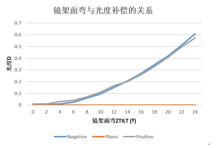鏡架面彎對(duì)低散光度有影響,且影響的程度大于高散的光度。