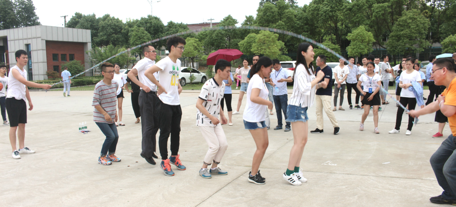 集體跳繩——2人搖繩,5人按次序進入跳繩區(qū)域,按進入跳繩區(qū)域人數(shù)最多,人齊后跳的最多的組勝。