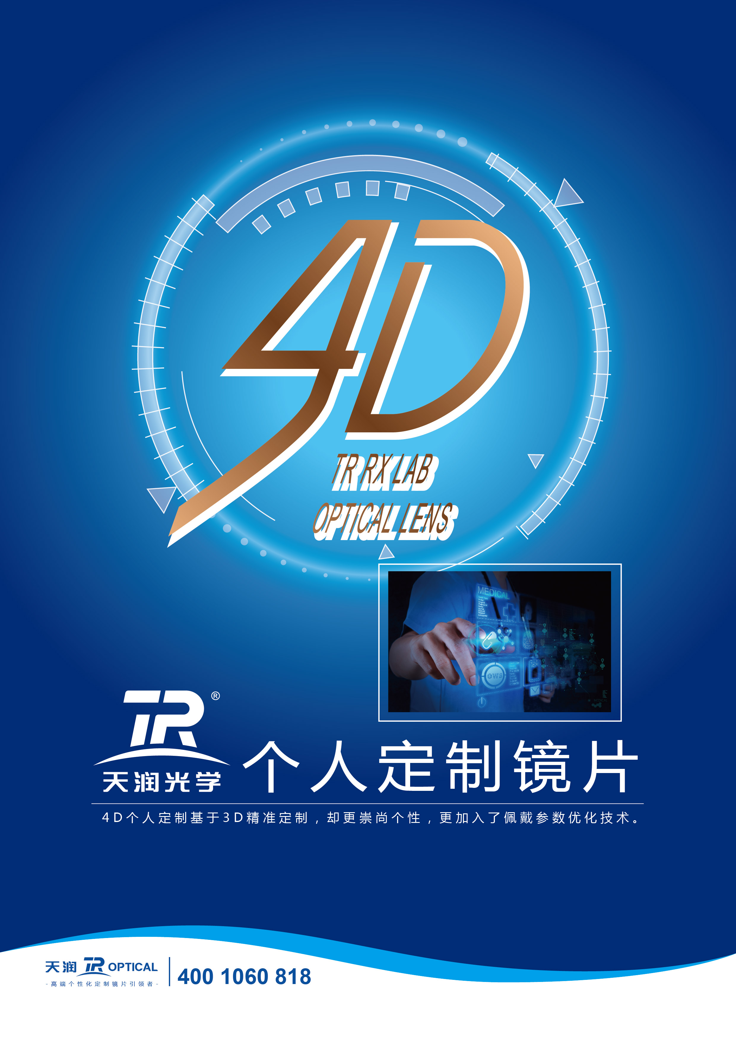 TR4D個人定制系列產(chǎn)品包含4D優(yōu)化單焦系列和4D內(nèi)漸進(jìn)系列(4D內(nèi)漸進(jìn)鏡片--V平衡型、4D內(nèi)漸進(jìn)鏡片--O辦公型、4D內(nèi)漸進(jìn)鏡片--S運(yùn)動型和4D內(nèi)漸進(jìn)鏡片--D駕駛型)