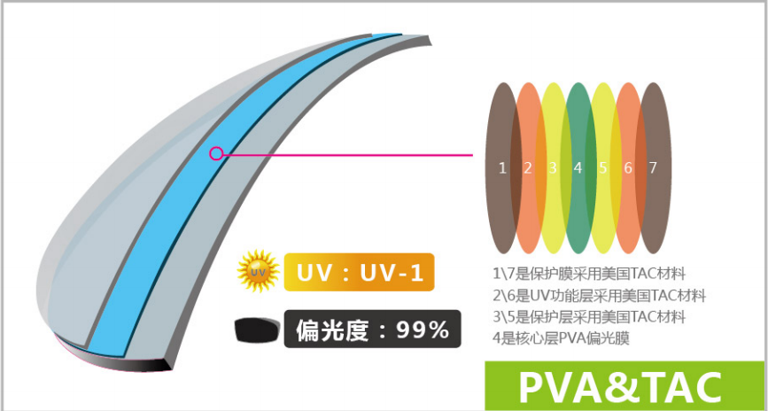 天潤偏光鏡片采用新一代PVA偏光膜 TAC功能保護(hù)層是目前歐、美、日發(fā)達(dá)國家偏光鏡片市場上的主流用材……