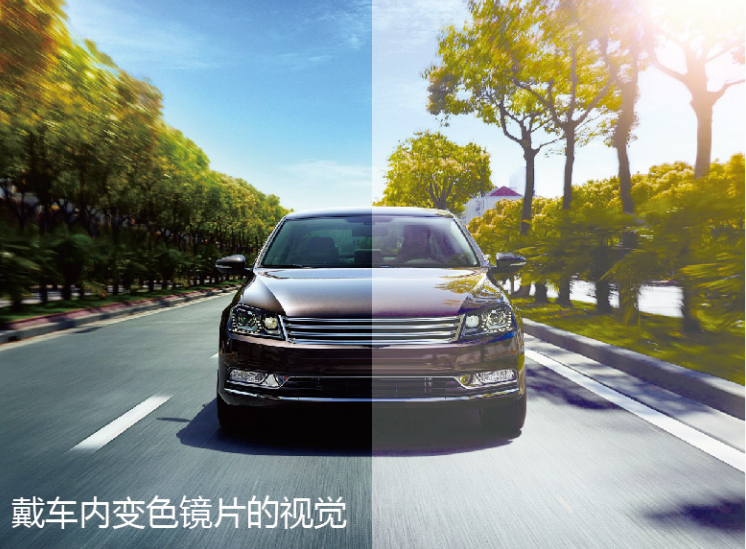 天潤光學(xué)針對這一情況,推出了一款獨(dú)特的日常鏡片解決方案。采用一種經(jīng)過專門設(shè)計的光致變色原料,它能夠同時被紫外線和自然光(可見光、透光或白光)激活,讓鏡片在車內(nèi)亦能提供適度的變色效果。