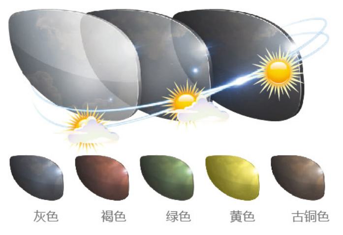 鏡片色調(diào)隨環(huán)境光變化自動調(diào)節(jié);