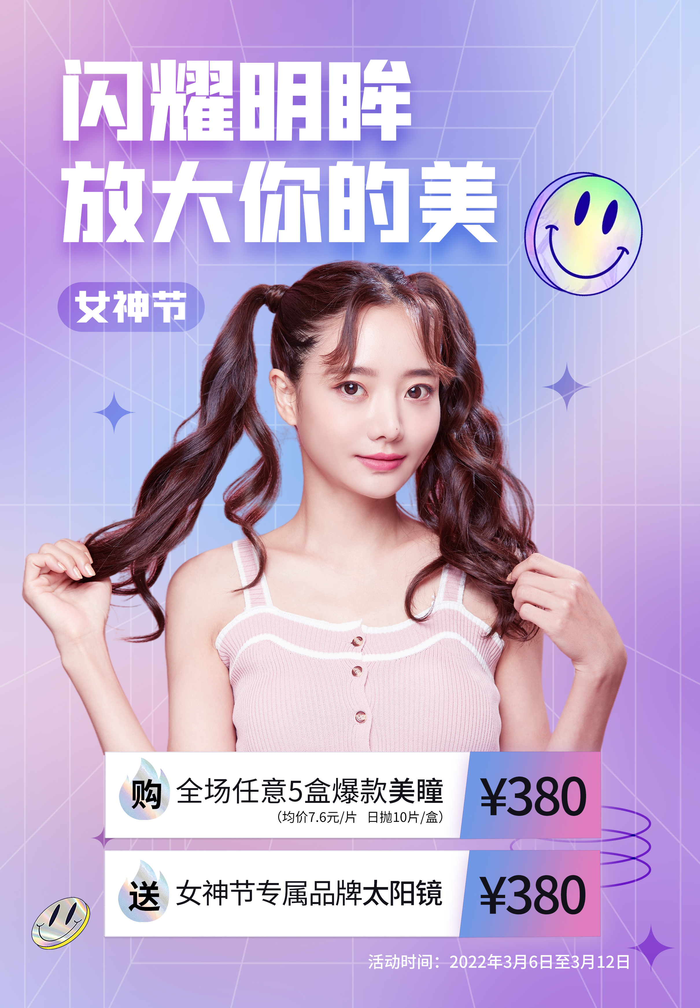 對于傳統門店而言,在電商時代的價格拉扯之下,美瞳/隱形眼鏡并不占據很大的優勢。但散光人群到店內購買,定制類型的美瞳/隱形眼鏡的需求還是非常大的。春天的到來,消費者戶外活動逐漸增加,太陽鏡開始進入熱賣期。因此,針對女神節活動,我們建議將美瞳/隱形眼鏡和太陽鏡雙品類聯動促銷。