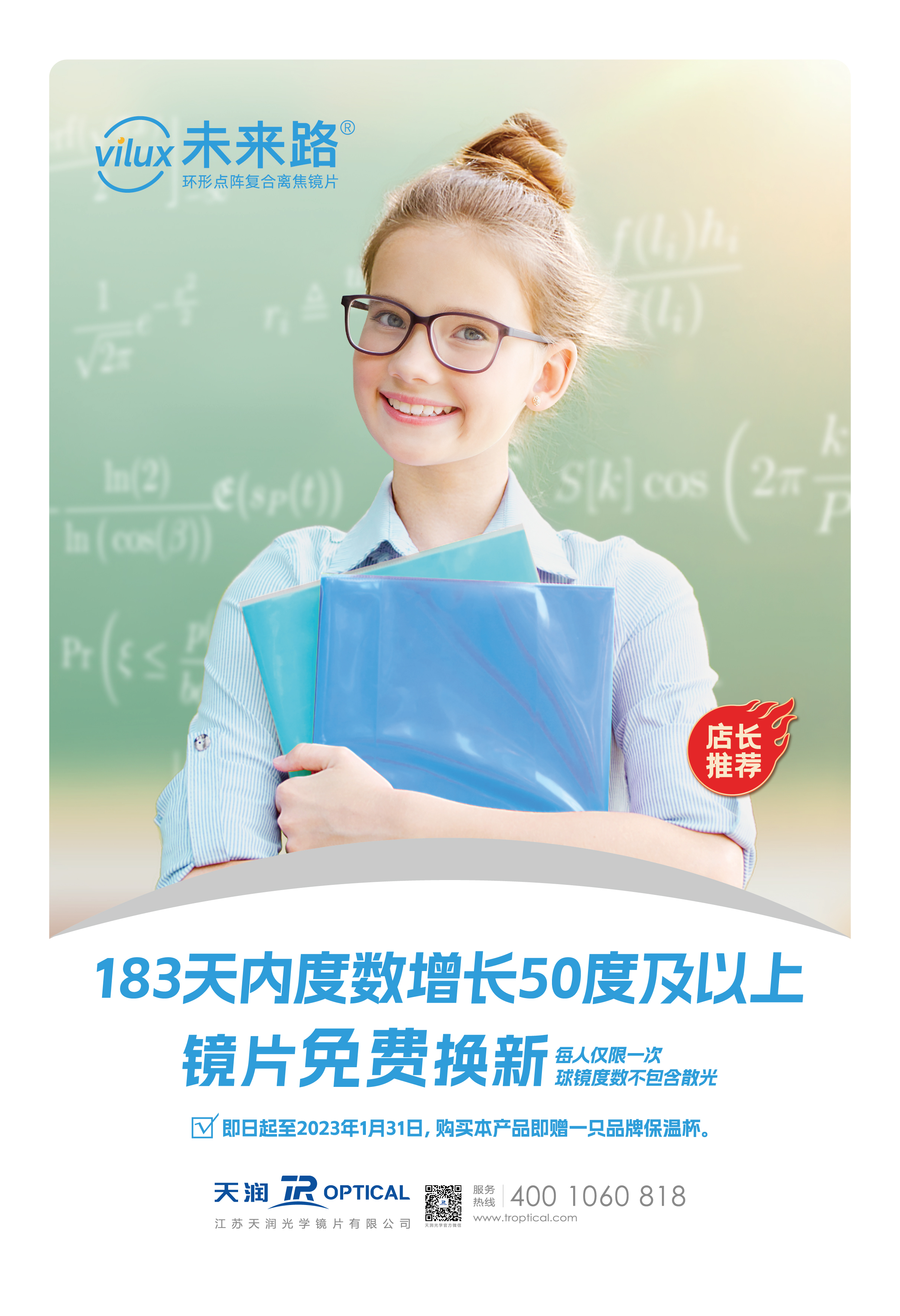 為了提升消費(fèi)者的配鏡體驗(yàn),給予顧客省心、貼心的購(gòu)物體驗(yàn)。凡定制天潤(rùn)光學(xué)未來(lái)路?環(huán)形點(diǎn)陣復(fù)合離焦鏡片的顧客,提供配套眼鏡布、眼鏡袋、眼鏡盒及定制帆布袋;同時(shí)即日起至2023年1月31日,購(gòu)買本產(chǎn)品均可獲得定制品牌保溫杯一個(gè)。