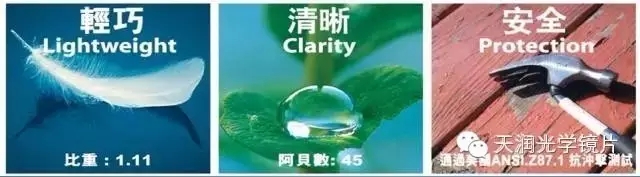 同時還具有比常見樹脂材料密度輕的特點,是目前世界上鏡片領域較輕材質,具有密度小、材質輕,阿貝數高、清晰度好,又安全實用的特點。