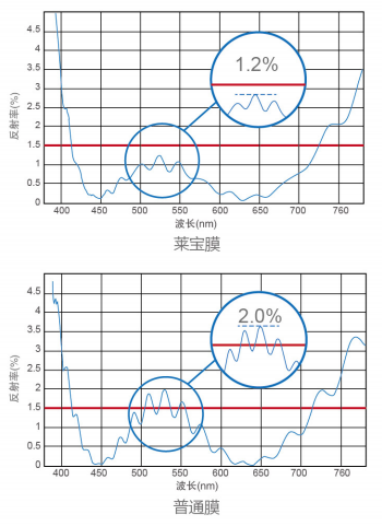 透光率低的膜層容易反光,拍照時能明顯看到眼鏡的反射光