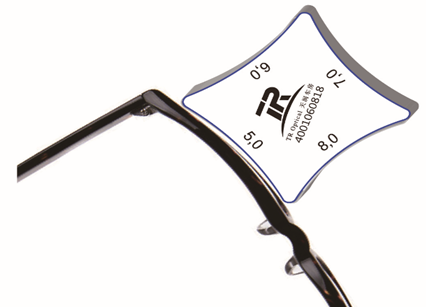 大基彎的測(cè)量:將天潤(rùn)的面彎尺與鏡架的鏡圈靠齊,選擇最接近的面彎