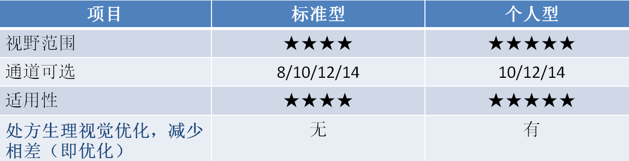 標(biāo)準(zhǔn)型和個(gè)人型內(nèi)漸進(jìn)設(shè)計(jì)上的區(qū)別: