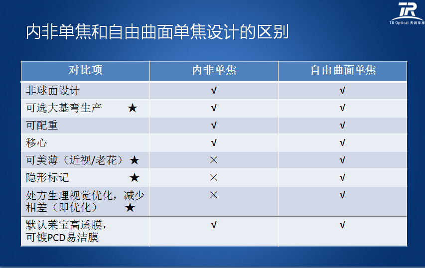 單焦鏡片分為內(nèi)非單焦和自由曲面單焦。前者適合對(duì)視覺(jué)要求一般的消費(fèi)者,后者適合對(duì)視覺(jué)要求較高的顧客。