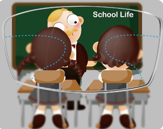青少年內(nèi)漸進,通過鏡片的上半部分看遠,可以矯正近視,解決“看遠不清晰”的問題。