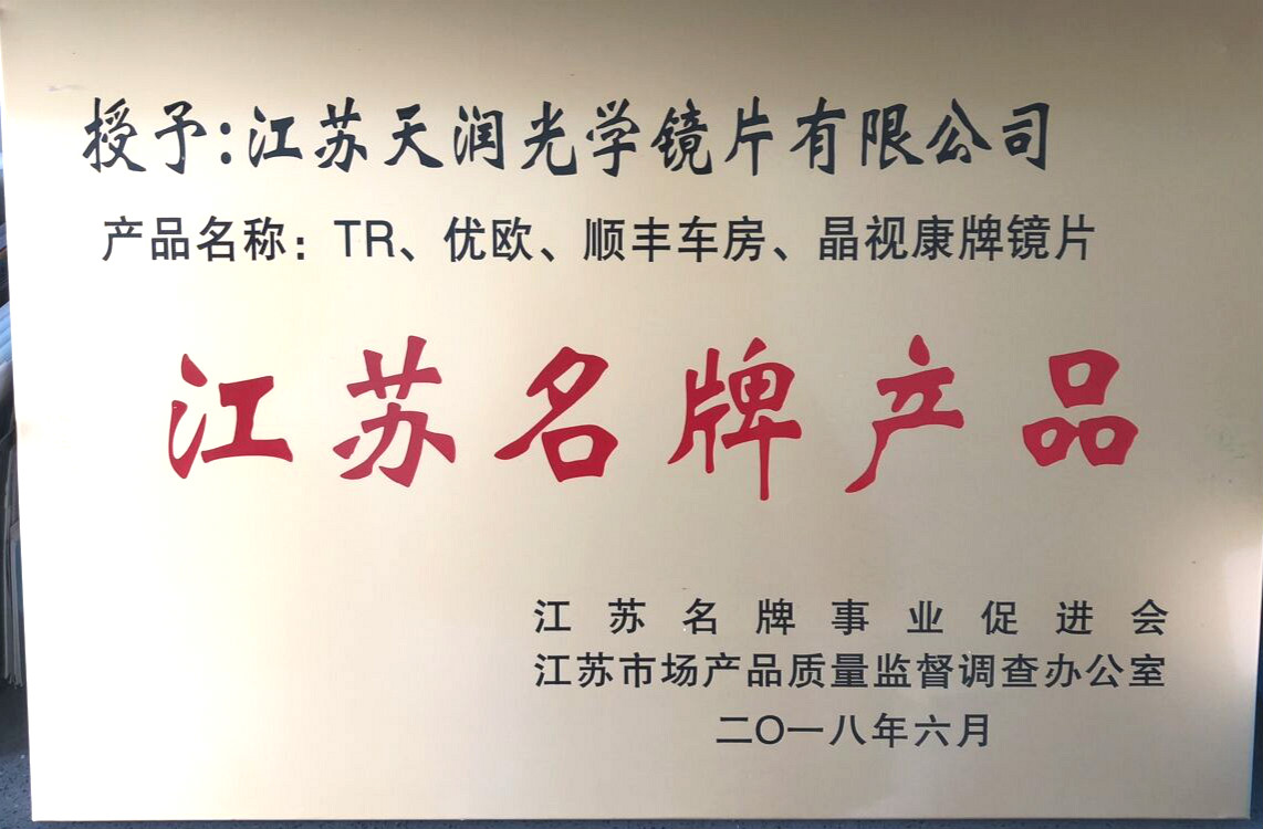 天潤(rùn)光學(xué)旗下“TR、優(yōu)歐、順豐車房、晶視康”4大品牌榮獲2018年度江蘇名牌產(chǎn)品。