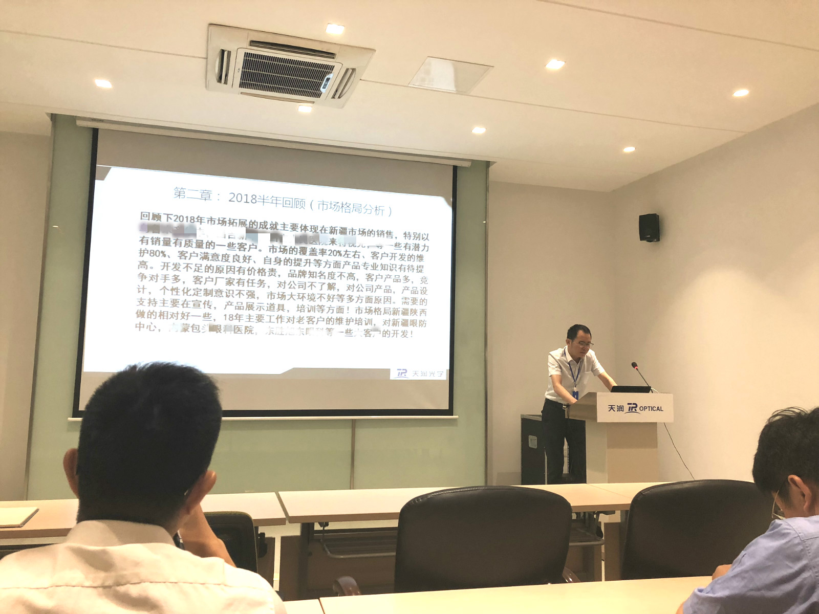今日,由天潤光學銷售部牽頭,市場部、客服部、生產總監參加了2018年度銷售部上半年度銷售總結會議。