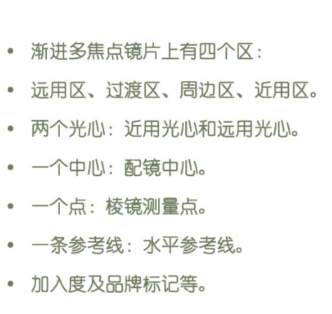 漸進片也稱為漸進多焦點鏡片,顧名思義一只鏡片上有多個焦點。漸進多焦點鏡片是-種上方用于看遠、下方用于看近、上下度數不同的鏡片。