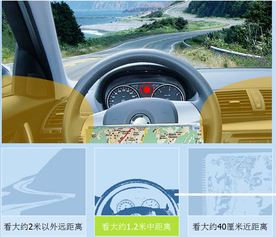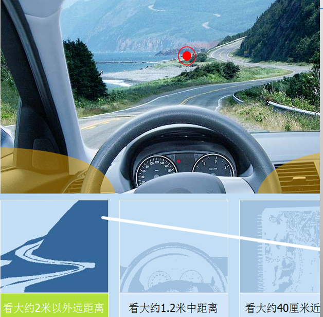 漸進片視物遠距離時:看遠時,利用鏡片上的遠用區視物,視線略高于鏡片的中心位置,下額略向內收一點。