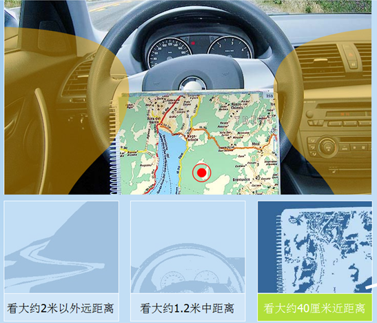 漸進片視物近距離時:利用鏡片上的近用區視物,保持合適的頭部姿勢,視線下移,通過鏡片的下方看目標。