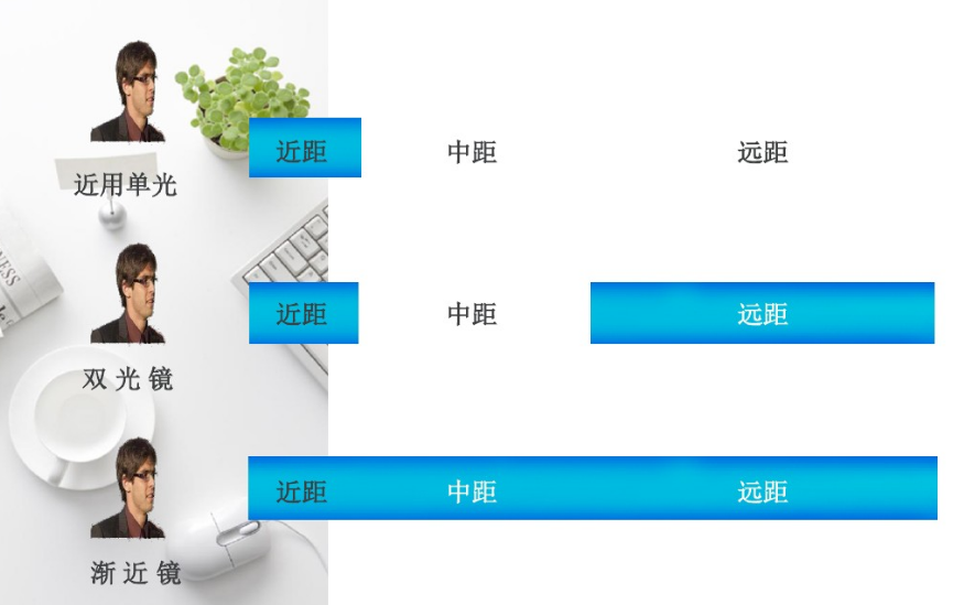 2、視近、視遠兼用,選中、長漸進區;