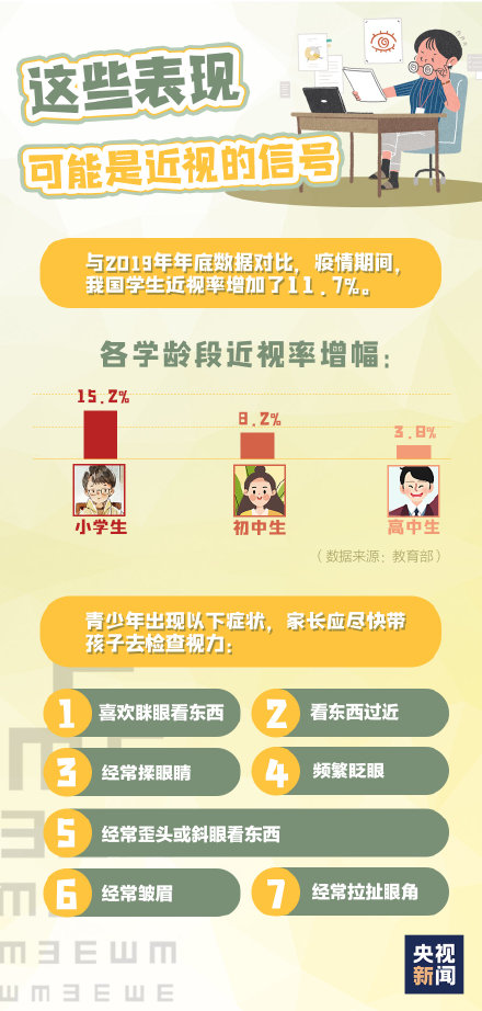 8月27日,教育部調研顯示,與2019年底相比,半年來學生近視率增加了11.7%。嚴峻的數據,再次給青少年視覺健康敲響了警鐘。青少年近視越來越普遍化,低齡化,如今終端電子的普及使得青少年接觸這些數碼電子產品的機會越來越多,長時間盯著屏幕,用眼過度,就會容易引發視力問題。